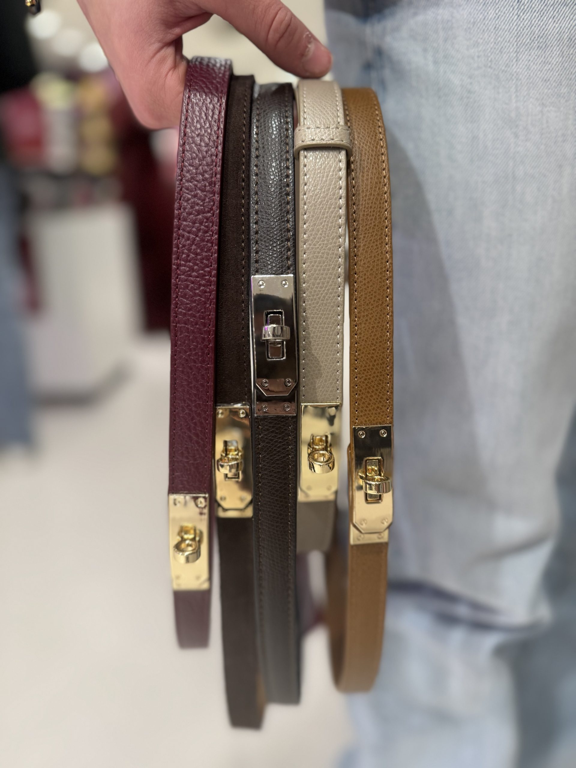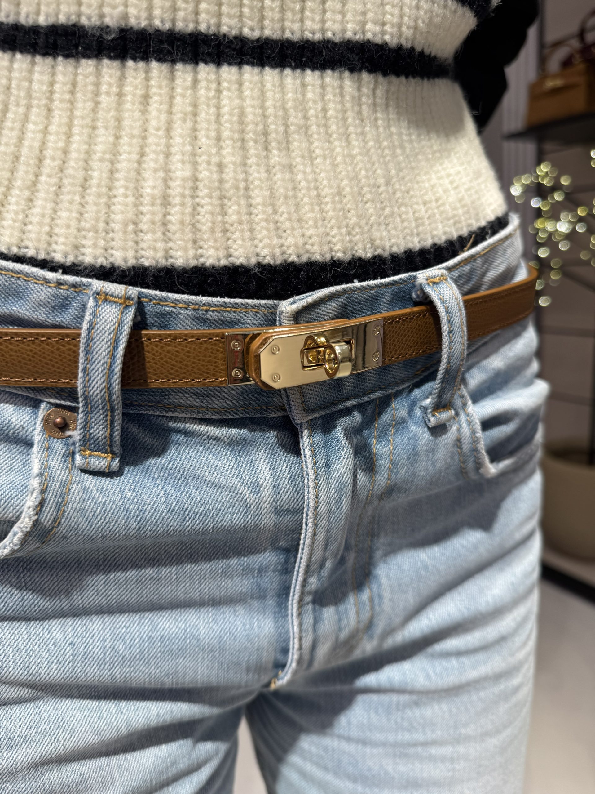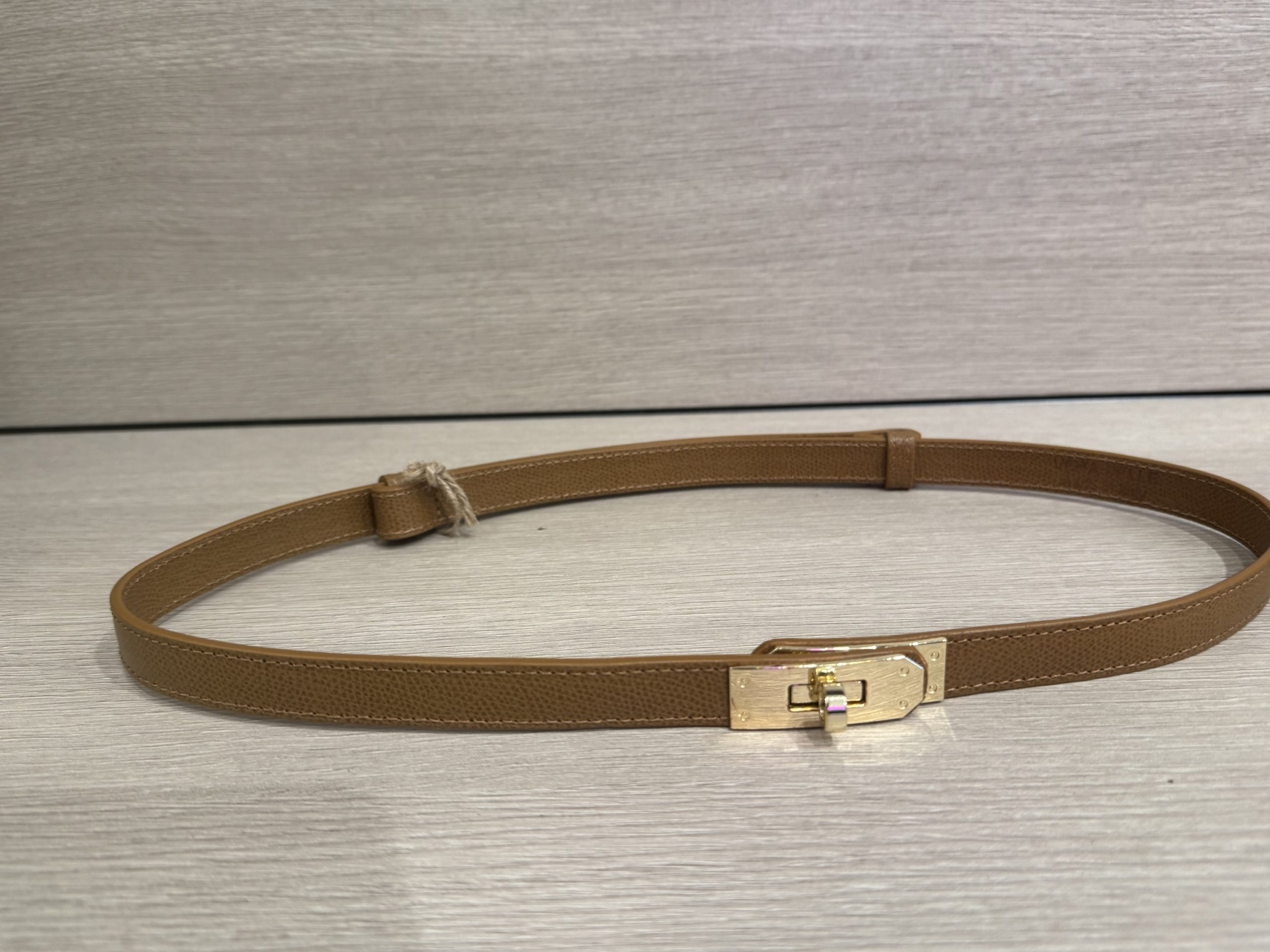 Een slanke riem in een warme cognacbruine tint, afgewerkt met een elegante goudkleurige sluiting. Het minimalistische ontwerp maakt deze riem perfect om zowel casual als chic te dragen. Ideaal om je outfit subtiel te accentueren, bijvoorbeeld in een jurk, blazer of high-waisted broek. Een tijdloos accessoire dat moeiteloos met verschillende stijlen combineert.